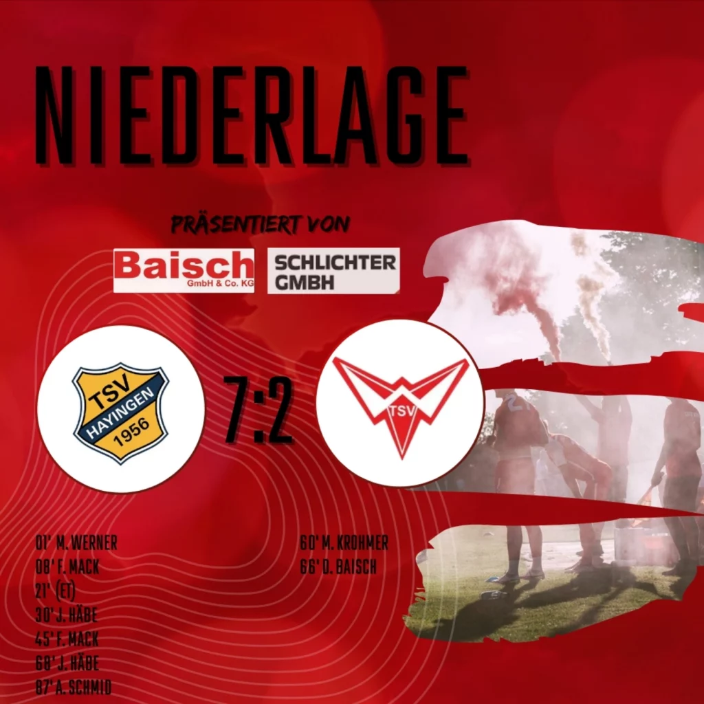 Wir verlieren das Auswärtspiel in Hayingen. Tore:60′ M. Krohmer66′ D. Baisch
