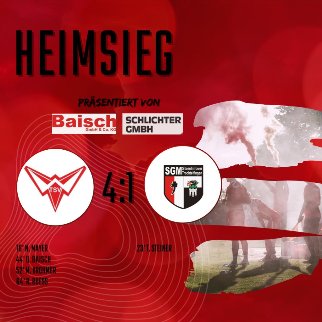 Nach einer engen ersten Halbzeit übernehmen wir in der zweiten Halbzeit das Spiel und gewinnen verdient mit 4:1. Tore:16′ N. Mayer44′ D. Baisch52′ M. Krohmer64′ R. Ruess