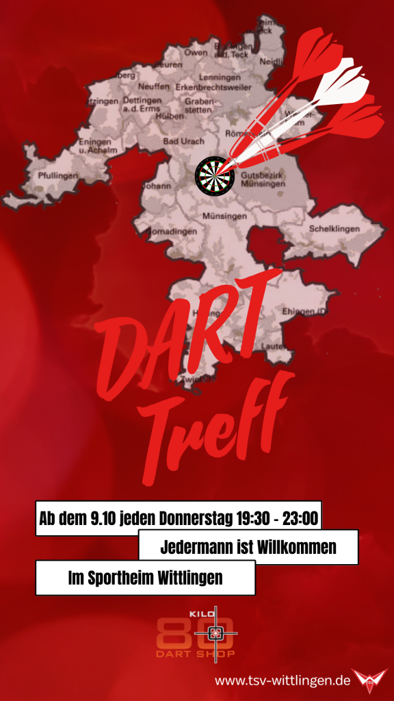 Alle, die gerne Dart spielen – oder es einfach mal ausprobieren möchten – sind gerne eingeladen zum neuen Dart- Stammtisch im Sporthaus des TSV Wittlingen!